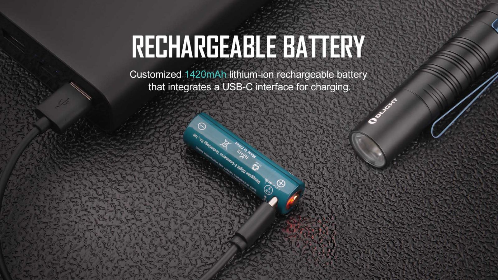 ● Полнива батерија: Посебна 14500 lithium-ion батерија со вграден USB-C приклучок