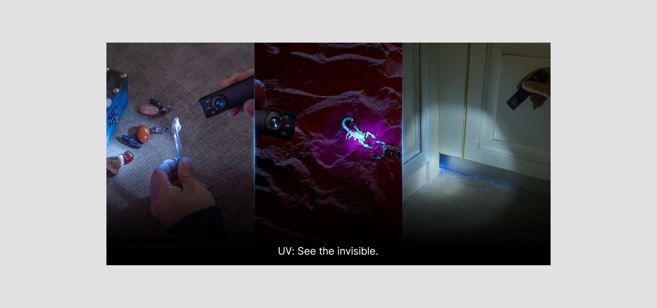 ● Универзална EDC: Olight’s ПРВА полнива 3 во 1 батериска лампа која комбинира 1,300lm бело светло, 900mW UV светло и Class 1 зелен ласер, со што е поволна за примена при разни апликации.